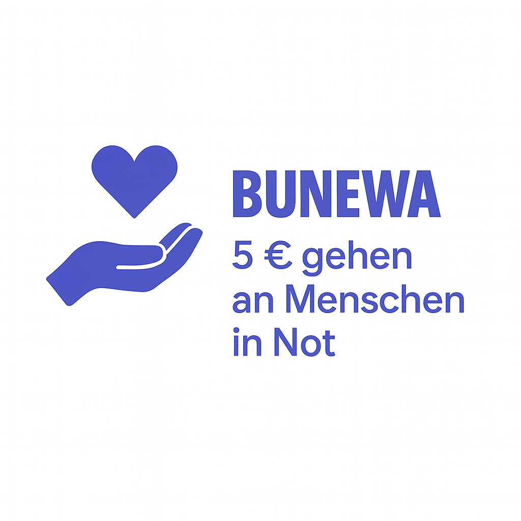 Mit jedem Einkauf bei BUNEWA werden 5 € an Hilfsorganisationen gespendet.